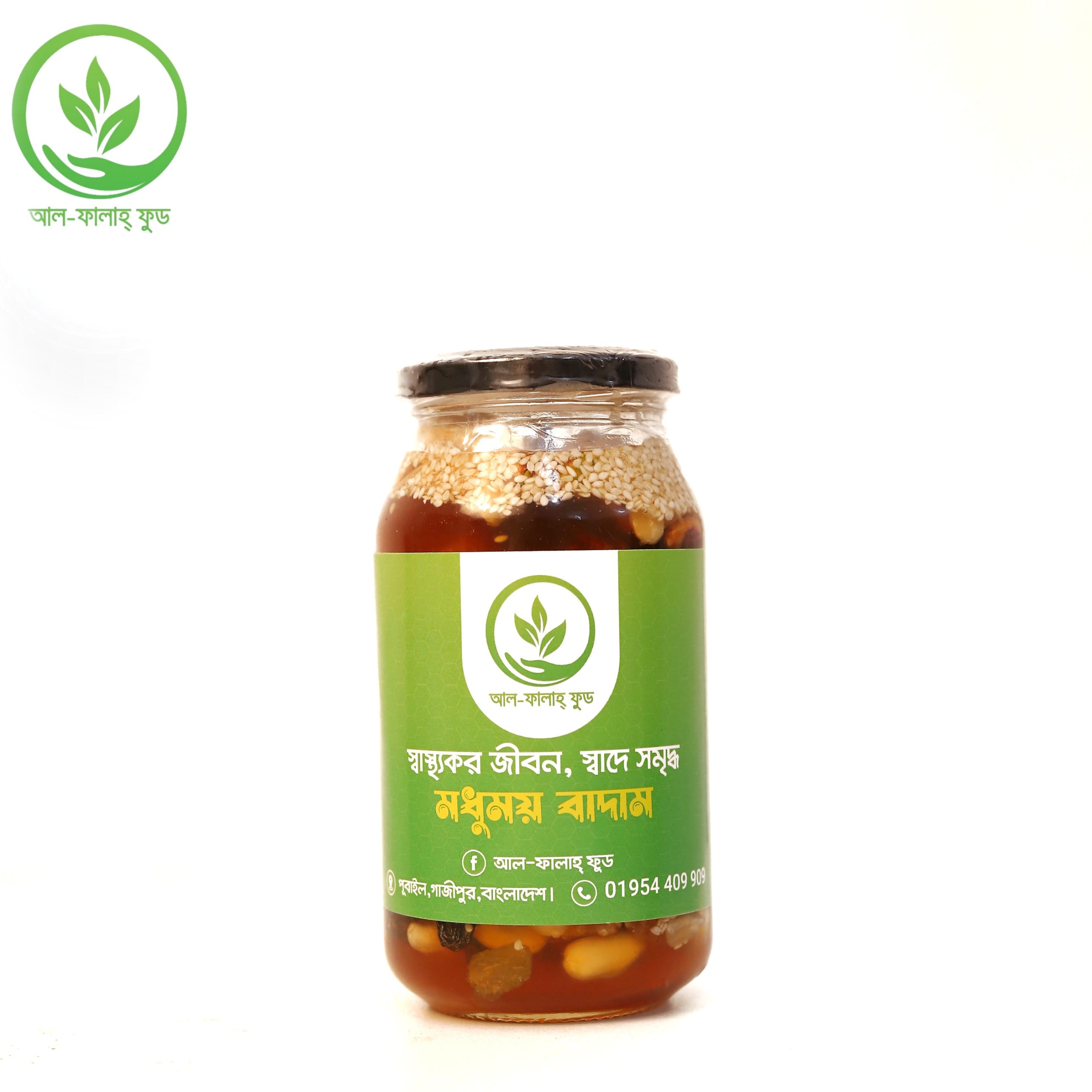 বিশুদ্ধ মধু এবং প্রিমিয়াম বাদামের মিশ্রণে তৈরি স্বাস্থ্যকর এবং সুস্বাদু একটি খাবার।